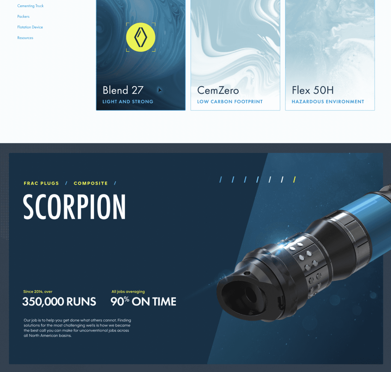 This is best exemplified in the cards for Nine’s cementing slurries, which were given icons and descriptions of their ideal use-case.